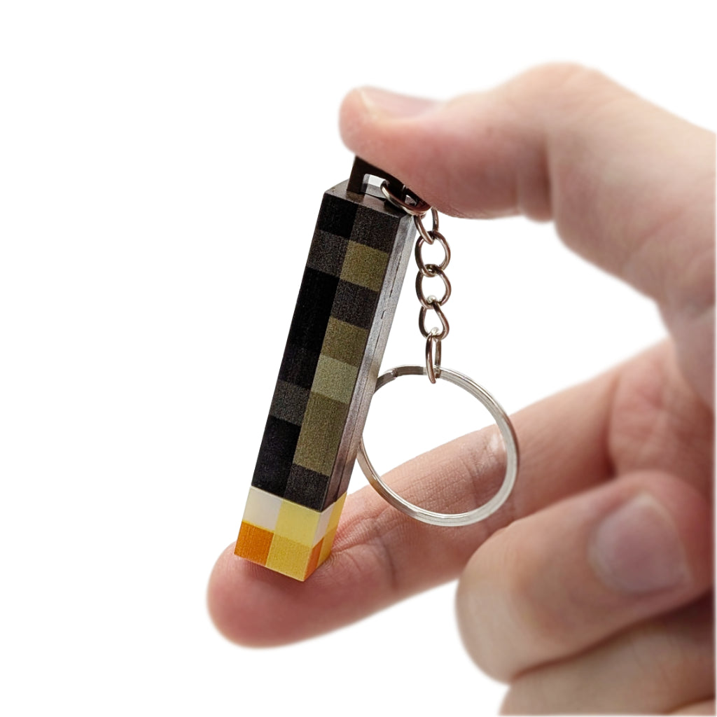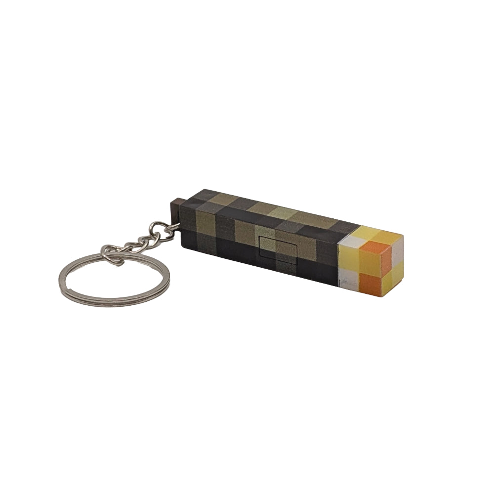 マインクラフトのたいまつ型LEDキーホルダー。