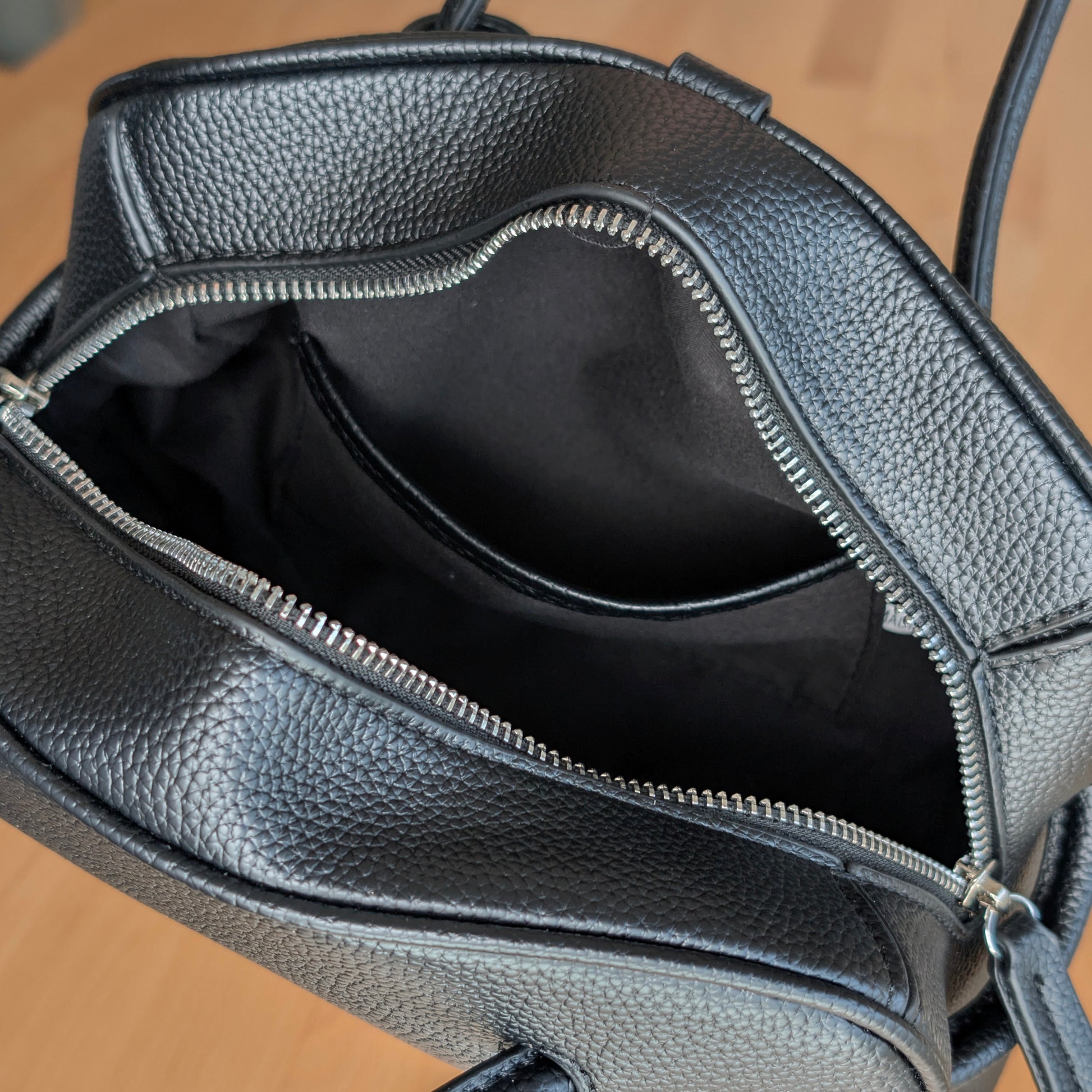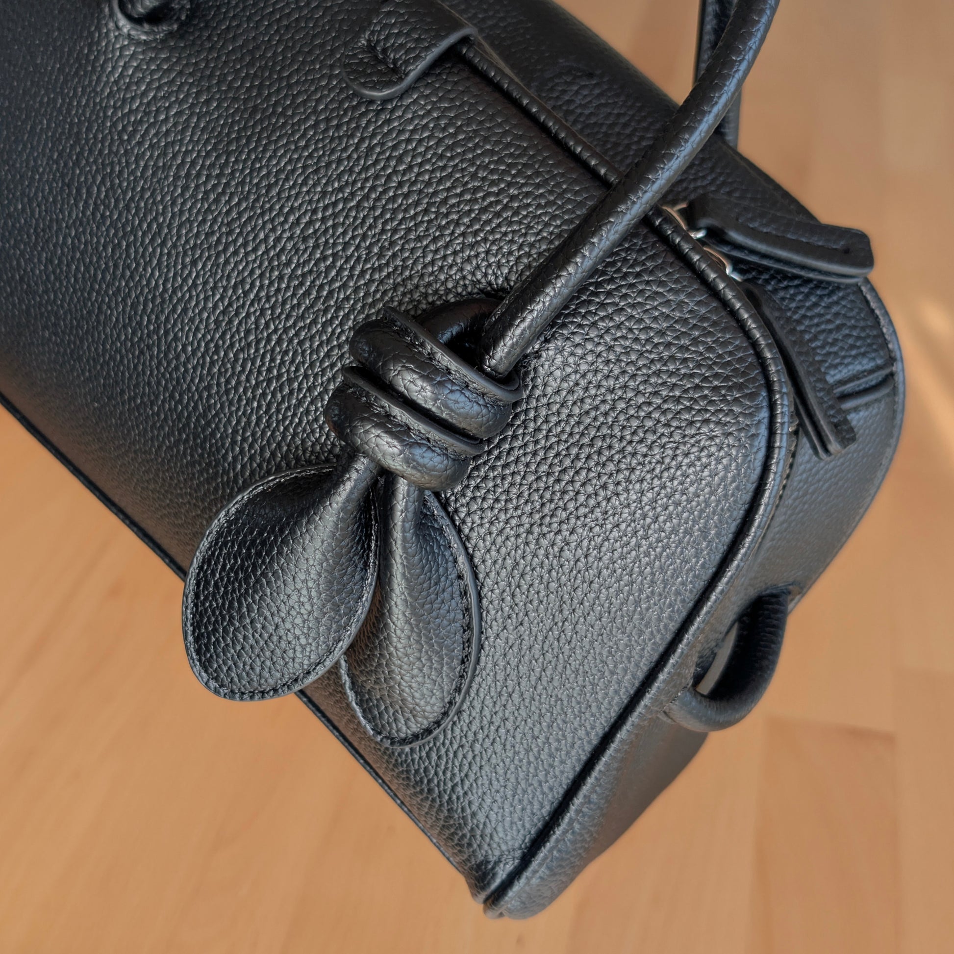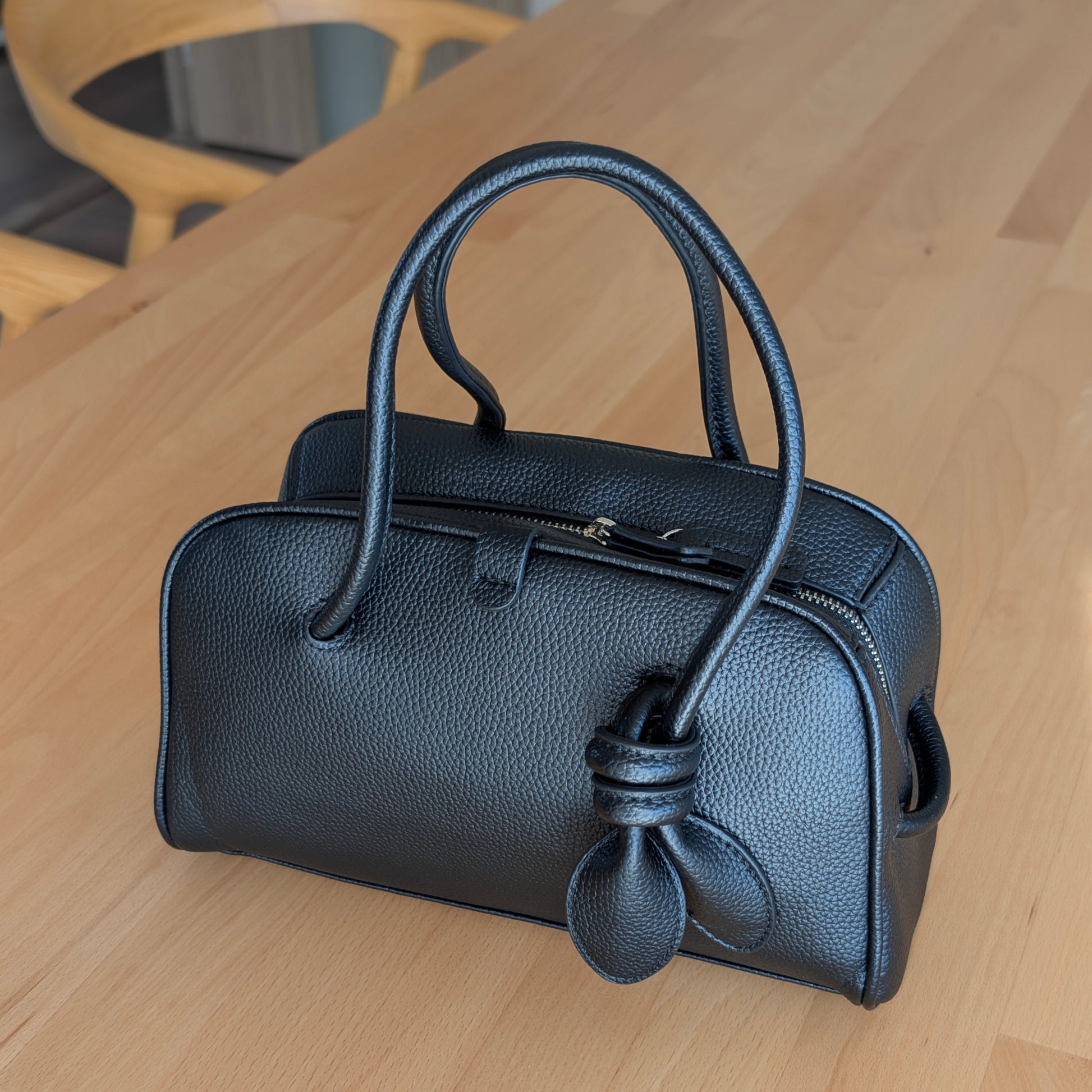 シボ感を施したフェイクレザーを使用したミニボストンバッグ。